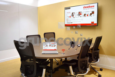 ClickShare es el sistema de presentación inalámbrica para Salas de Reuniones de tamaño pequeño y mediano con el cual podrás compartir contenido sin complicaciones desde tu laptop, Tablet, celular o cualquier dispositivo móvil, sin cables, sin configuraciones y sin tiempos de espera. Podrás visualizar en una misma pantalla desde 1 hasta 4 presentaciones de forma simultánea sin interrupciones, tener un usuario en modo moderador y lo mejor es la compatibilidad con varios sistemas operativos como Apple y Android.