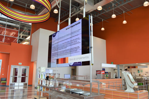 Además de tener un diseño adecuado de distribución de contenido y una pantalla que se ajuste al tipo de mensaje que se quiere enviar, es importante que haya una correcta adecuación de los espacios en los que se vayan a montar las pantallas. La pantalla va a lucir tanto como el espacio que la rodea se lo permita. Por lo mismo hay que coordinar una correcta instalación y montaje de las pantallas, con soportes a pared, a techo o a piso, así como con el enclosure, housing o marco estructural que más las haga lucir.