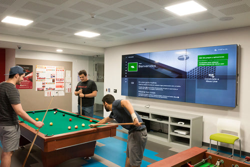 El uso de Digital Signage en Recepciones y Lobbys representa un medio de comunicación que día a día está acaparando la atención de más Empresas. Como ejemplo podemos encontrar un videowall en la entrada de un edificio indicando las oficinas que se encuentran en los distintos pisos. Esta información puede ir acompañada de publicidad, videos y audio envolvente gracias al uso de Software para Digital Signage o reproductores multimedia dando al visitante una bienvenida que más bien se convierta en una experiencia única.