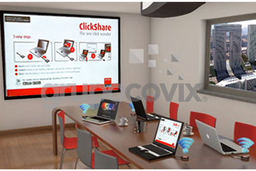 ClickShare es el sistema de presentación inalámbrica para Salas de Reuniones de tamaño pequeño y mediano con el cual podrás compartir contenido sin complicaciones desde tu laptop, Tablet, celular o cualquier dispositivo móvil, sin cables, sin configuraciones y sin tiempos de espera. Podrás visualizar en una misma pantalla desde 1 hasta 4 presentaciones de forma simultánea sin interrupciones, tener un usuario en modo moderador y lo mejor es la compatibilidad con varios sistemas operativos como Apple y Android.