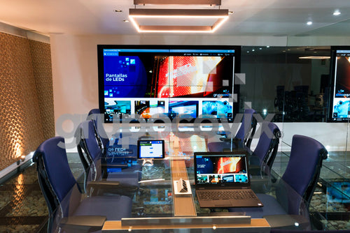 Las Salas de Juntas modernas pueden integrar proyectores, pantallas planas, pantallas touch, pantallas de LEDs, pantallas LED LCD, microfonía, pizarrones interactivos, Videoconferencia, Videoconferencia Zoom, Telepresencia, iluminación, sistemas de audio, mobiliario para Salas de juntas,así como touch panels para controlar los elementos instalados. Todos estos equipos son adaptados e integrados por un diseño que Grupo Covix trabaja junto con el usuario para lograr la automatización y el control total de las salas. Los equipos audiovisuales de una Sala de Juntas son automatizados para que desde una pantalla táctil se tome control total de las funciones de la sala. De esta forma se pueden controlar audio, video, iluminación, cortinas, aire acondicionado, y prácticamente cualquier dispositivo electrónico instalado dentro de la Sala.