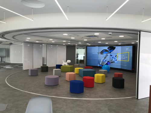 Desde una Sala de Juntas pequeña hasta un salón de presentaciones, estos espacios integran diferentes Soluciones Audio visuales, capaces de integrar todas ellas en un solo espacio. Su característica principal es la flexibilidad para poder operar como una Sala de Juntas pequeña o reconfigurarse de diferentes maneras para terminar con la distribución de una sala mayor o inclusive de un Auditorio.